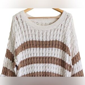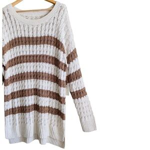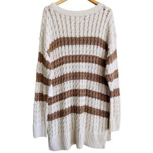 ANTHROPOLOGIE PILCRO Oversized Casual Cable Knit Striped Pullover Sweater