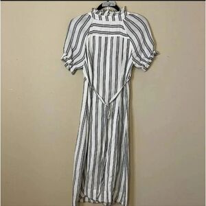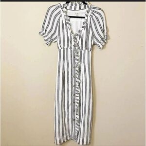 ANTHROPOLOGIE PILCRO Ruffle Gray White Linen Tie Back Midi Dress 0 XS S
