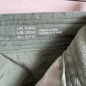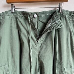 Details: ANTHROPOLOGIE PILCRO Slouchy fit surplus cargo pants in sage green with a wide cropped leg, drawstring waist with zipper & snap closure, pleat at the waist, 2 side seam pockets, 2 thigh pockets with snap closure and one back pocket.