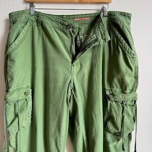 Details: ANTHROPOLOGIE PILCRO Utility Cargo Pants in a bright sage green with 6 pockets, wide legs, zipper & button closure.