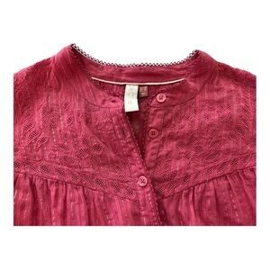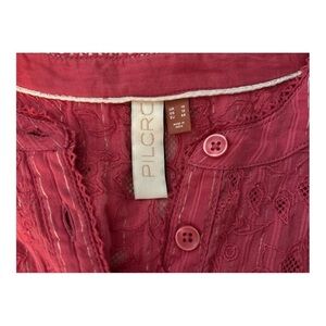 ANTHROPOLOGIE PILCRO top.Size 12, pink, long sleeves cutout lace front and back