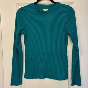 ANTHROPOLOGIE PILCRO Long Sleeve Ribbed Top Teal Top Women’s Size Small