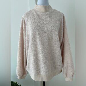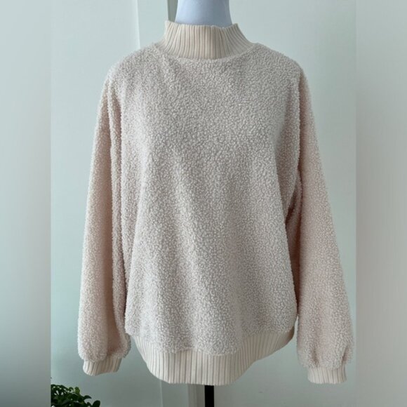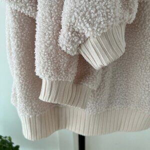 ANTHROPOLOGIE PORRIDGE Cream Brynn Sherpa Pullover Sweater Relax Fit Fuzzy Cozy