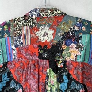 ANTHROPOLOGIE Patchwork Button Up Blouse Sz XL Paisley Floral