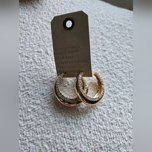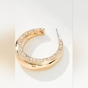 ANTHROPOLOGIE, Pave Open Hoop Earrings, Gold Tone- NEW!