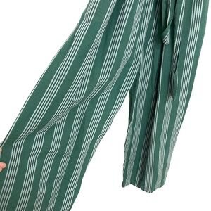 ANTHROPOLOGIE Payal Pratap Cha Cha Green Stripe Linen Wide Leg Crop Jumpsuit