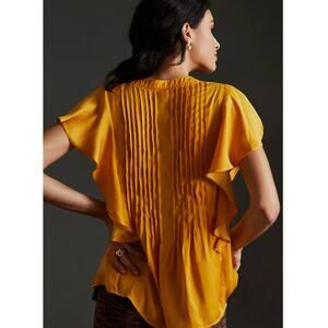ANTHROPOLOGIE Petites Mango Yellow Pintuck Flutter Sleeve Blouse SP