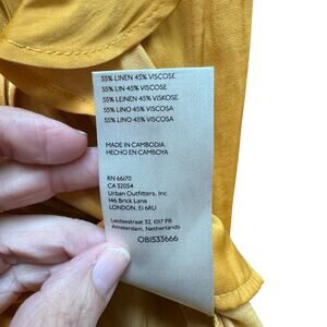 Brighten your fall wardrobe with this stunning Anthropologie Petites pintuck blouse in a rich mango yellow hue. Crafted from a breathable linen-viscose blend, it features delicate pintuck detailing, flutter sleeves, and soft ruffle accents along the sides for a flattering, feminine look. Perfect for pairing with jeans, skirts, or trousers for both casual and elevated outfits.