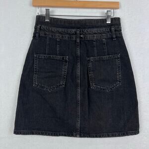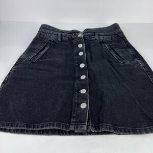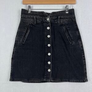ANTHROPOLOGIE Pilcro Black Button Up 100% Cotton Mini Denim Jean Skirt Size 2