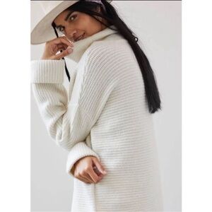ANTHROPOLOGIE Pilcro Cowl Neck Ivory Cream Oversized Knit Sweater Chunky Large
