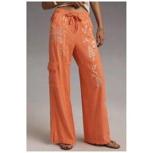 ANTHROPOLOGIE | Pilcro | Embroidered Beach Linen Cargo Pants | NWT