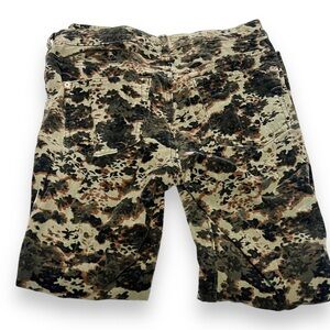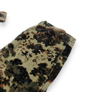 These Anthropologie pants are high-rise, slim-fit skinny corduroy pants in a colorful camo print. They feature a button-fly closure and are cropped in style, making them suitable for casual occasions. With a size of 28, they are made from a cotton blend fabric, adding comfort and style to the garment. The unique camo print adds a touch of vibrancy to the overall look, perfect for those seeking a bold and eye-catching addition to their wardrobe.