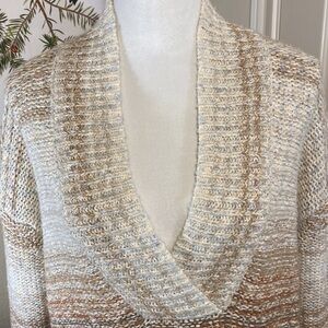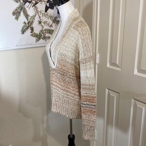 ANTHROPOLOGIE Pilcro Joyce Oversize Neutral Striped V Neck Chunky Sweater Size M