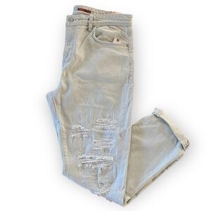 ANTHROPOLOGIE Pilcro Mid Rise Slim Boyfriend Distressed Jeans Ocean Studio Size 31 NEW
