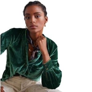 ANTHROPOLOGIE Pilcro Puff-Sleeved Velvet Buttondown