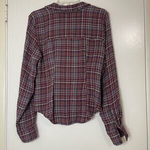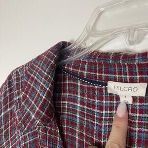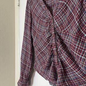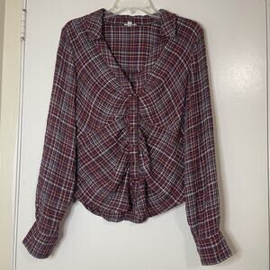 ANTHROPOLOGIE Pilcro Red plaid collared ruched button down long sleeve shirt SML
