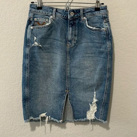 ANTHROPOLOGIE Pilcro and the Letterpress Denim Pencil Midi Skirt, Size 2