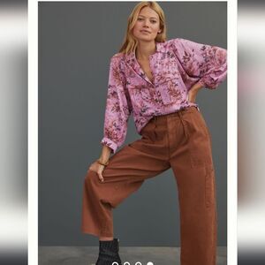 ANTHROPOLOGIE Pilcro pink femme utility gorp duck blouse button up shirt L