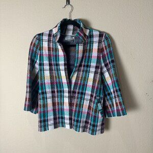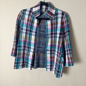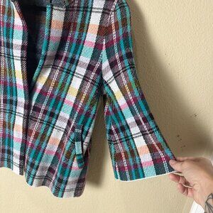 ANTHROPOLOGIE Plaid Knit Cropped Blazer Size XS