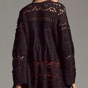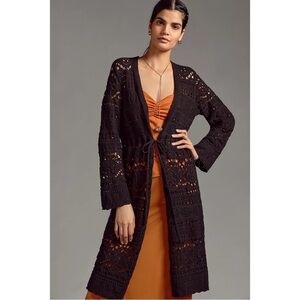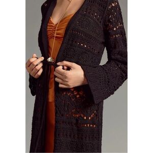 ANTHROPOLOGIE Pointelle Cardigan Sweater Long Sleeve Top Black Size S NWT