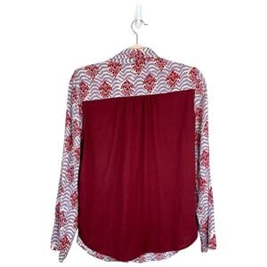 ANTHROPOLOGIE Porridge Medallion Mixed Media Top Boho Long Sleeve Blouse Small
