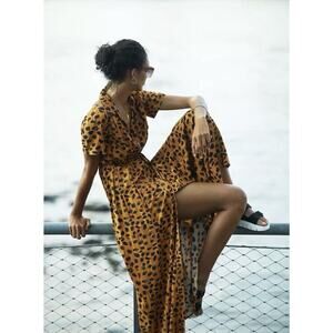 ANTHROPOLOGIE Porridge Vianne Maxi Shirt Dress Cheetah Animal Print Size 2 - Pre-Owned EXCELLENT Condition!