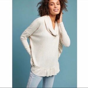 ANTHROPOLOGIE Postmark Orley Ruffled Cowlneck Ivory M/ L