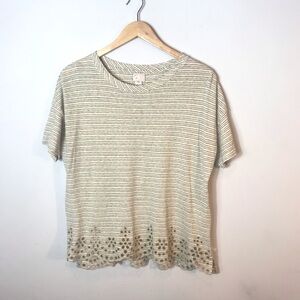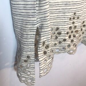 ANTHROPOLOGIE Postmark Striped Eyelet Hem Top