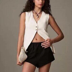 ANTHROPOLOGIE Pull On Linen Blend Tap Shorts Black Size XL NEW