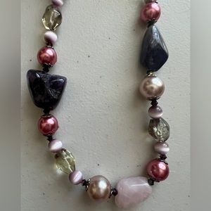 📿ANTHROPOLOGIE Purple💜Pink💗 Semi-Precious Stones & Beads Necklace NEW