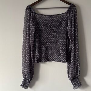 ANTHROPOLOGIE ROUEN SMOCKED CROP TOP WITH SHEER LONG SLEEVES SIZE SMALL