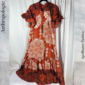 ANTHROPOLOGIE RUFFLED SLEEVES MAXI DRESS SMALL IN CRIMSON NWOT