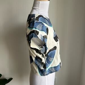 ANTHROPOLOGIE RYDER BLUE FEATHER PRINT CROPPED T SHIRT XS