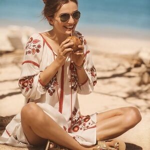 ANTHROPOLOGIE | Ranna Gill Hadley White Pink Embroidered Floral Boho Mini Dress