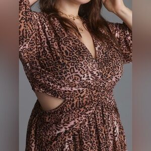 ANTHROPOLOGIE Ranna Gill Leopard Print Midi Dress Puffed Sleeves Size Medium