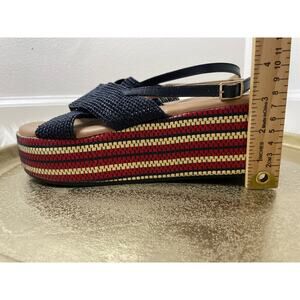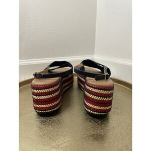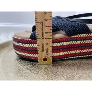 ANTHROPOLOGIE Red, Cream, and Blue Raffia Platform Sandals Size 10