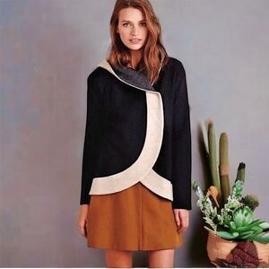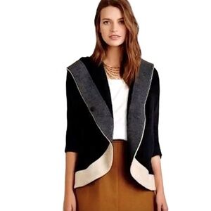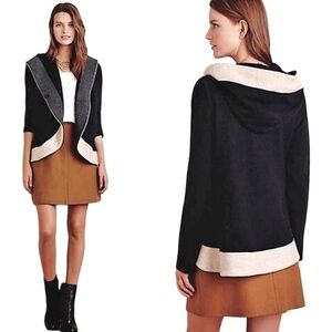 ANTHROPOLOGIE Rosie Neira Black Colorblock Boiled Wool Hooded Jacket