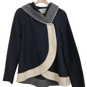 ANTHROPOLOGIE Rosie Neira Hooded Boiled Wool Color Block Sweater Jacket