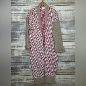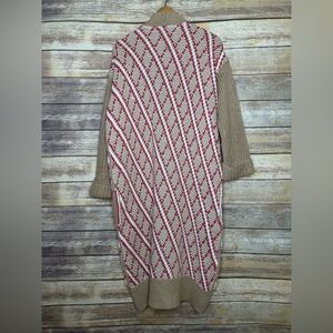 ANTHROPOLOGIE S PATRICE GEOMETRIC CARDIGAN pink and cream knit duster. in great condition lightly worn perfect for fall.