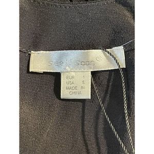 ANTHROPOLOGIE SEE U SOON Blouse Embroidered Flowy Pullover Top Black Small NWT