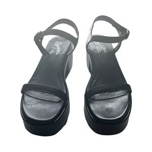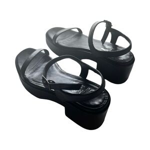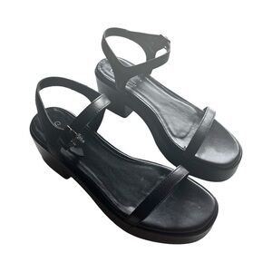 ANTHROPOLOGIE SEYCHELLES Rest Assured Heeled Leather Sandal Black Sz 6