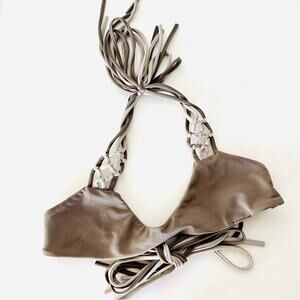ANTHROPOLOGIE SIEMPRE GOLDEN Tan Beige Cream Halter Tie Multi Strap Bikini Top S
