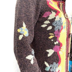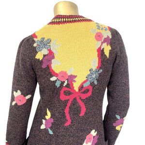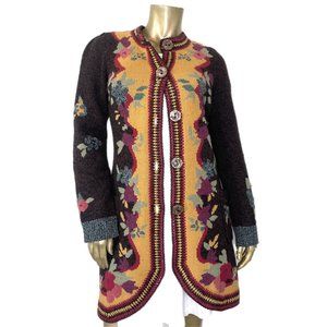 ANTHROPOLOGIE SPARROW YELLOW BRICK ROAD FLOAL SWEATER LONG CARDIGAN, WOOL SIZE S
