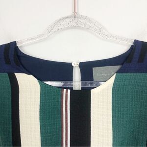 Gorgeous vertical stripe long sleeve dress by Sunday in Brooklyn for Anthropologie. Long loose sleeves with button cuffs. Crewneck. Back keyhole with button closure. Drawstring sides that tie. Black, blue, green, and cream. Great condition!! Womens size small.