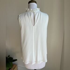 ANTHROPOLOGIE SUNDAY IN BROOKLYN WHITE PLEATED RUFFLE NECK BLOUSE