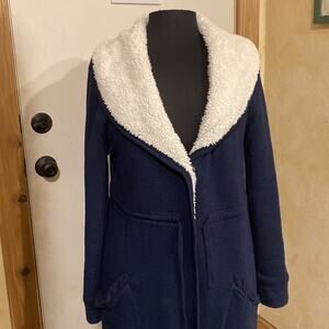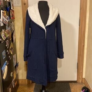 Anthropologie Saturday Sunday navy and cream shawl collar teddy Sherpa lined drawstring waist overcoat. Size medium, see pictures for details.