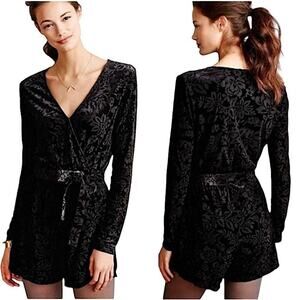 ANTHROPOLOGIE Saylor The Rebecca Black Velvet Floral Burnout Romper