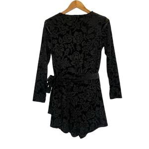 Women’s The Rebecca Black Velvet Floral Burnout Belted Vneck Romper