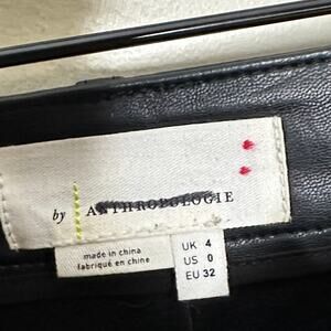 ANTHROPOLOGIE Scalloped Laser Cut Faux Leather Trouser Pants Black Sz 0 {3T53}
