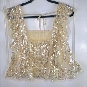 ANTHROPOLOGIE Sequin Ruffled Tank Cream Size Large
